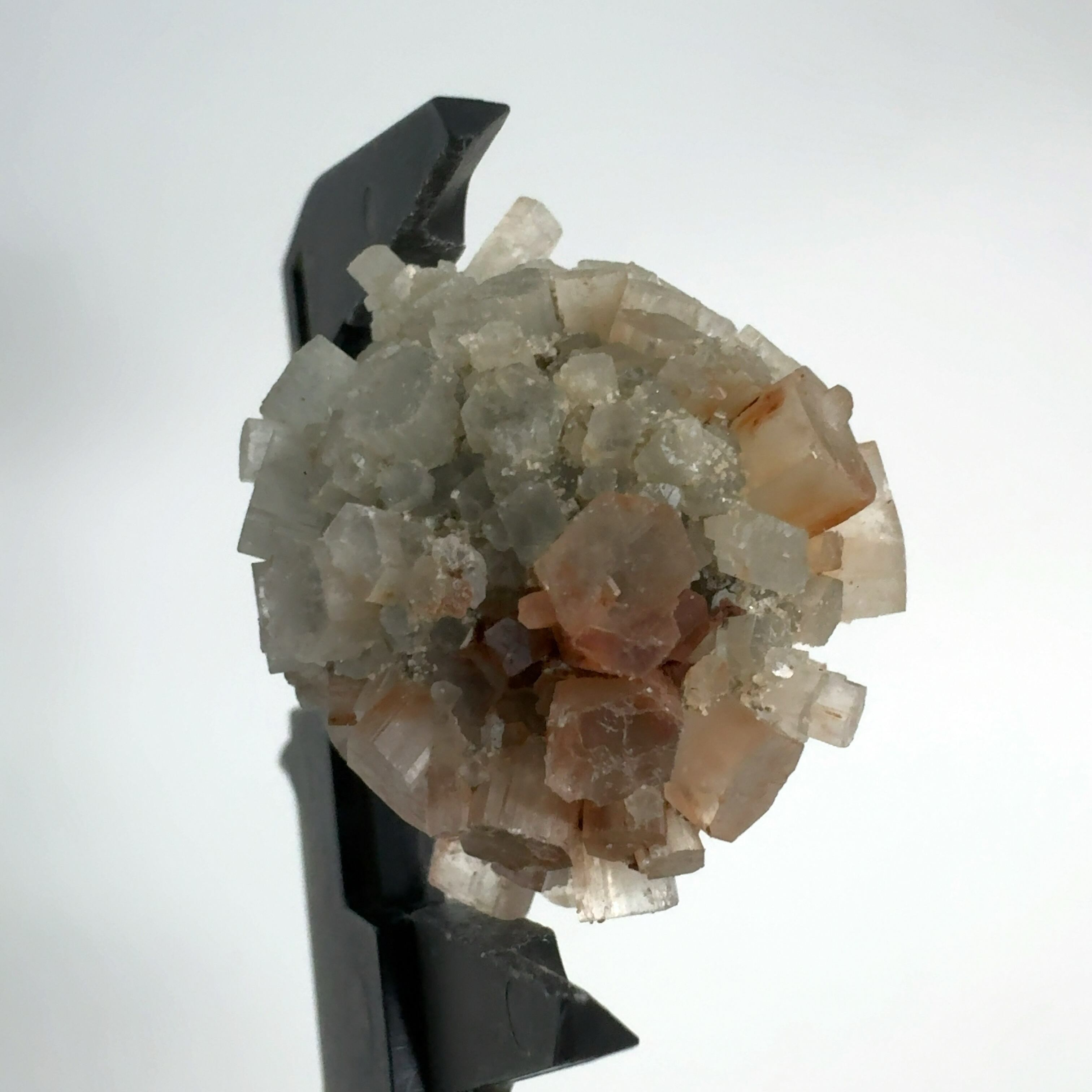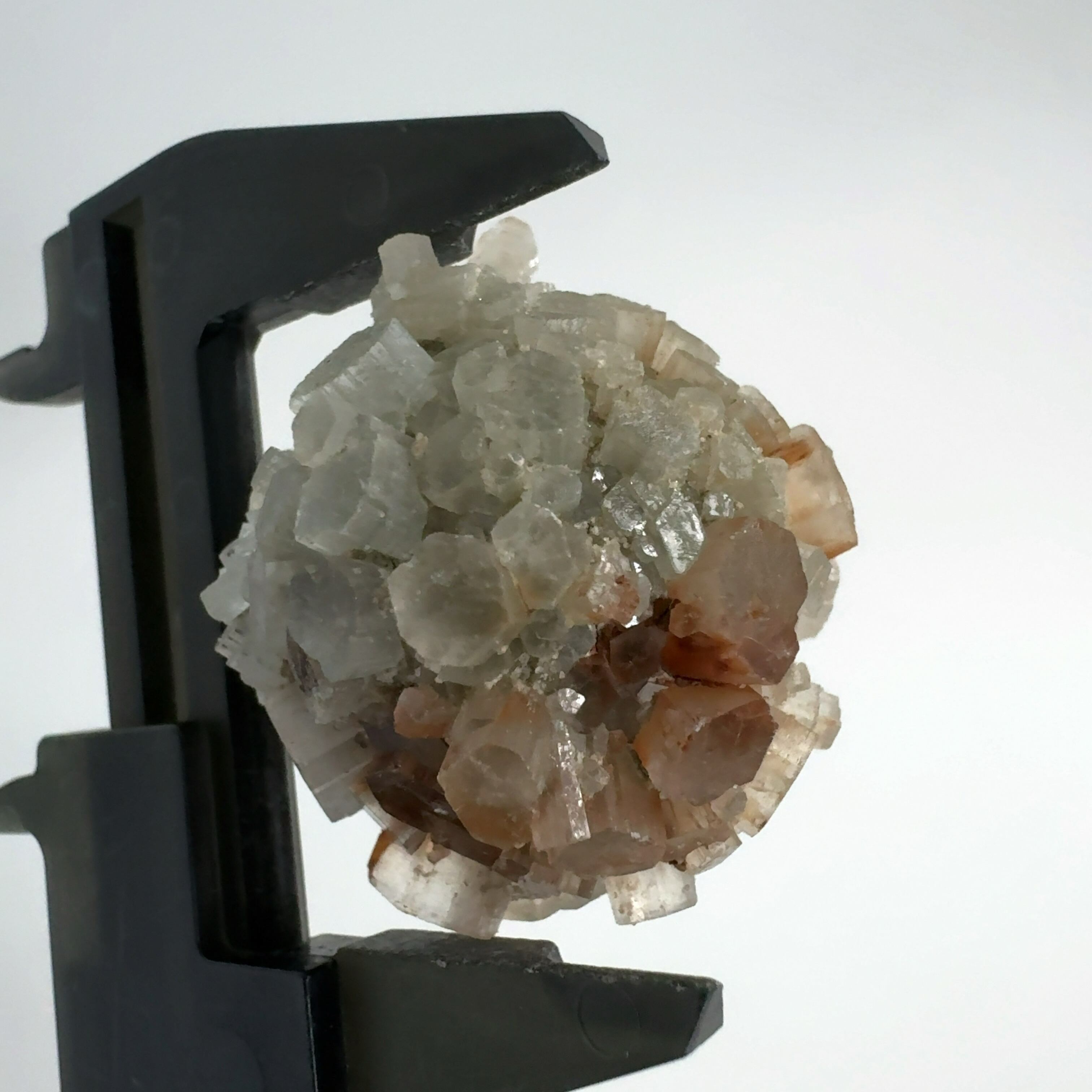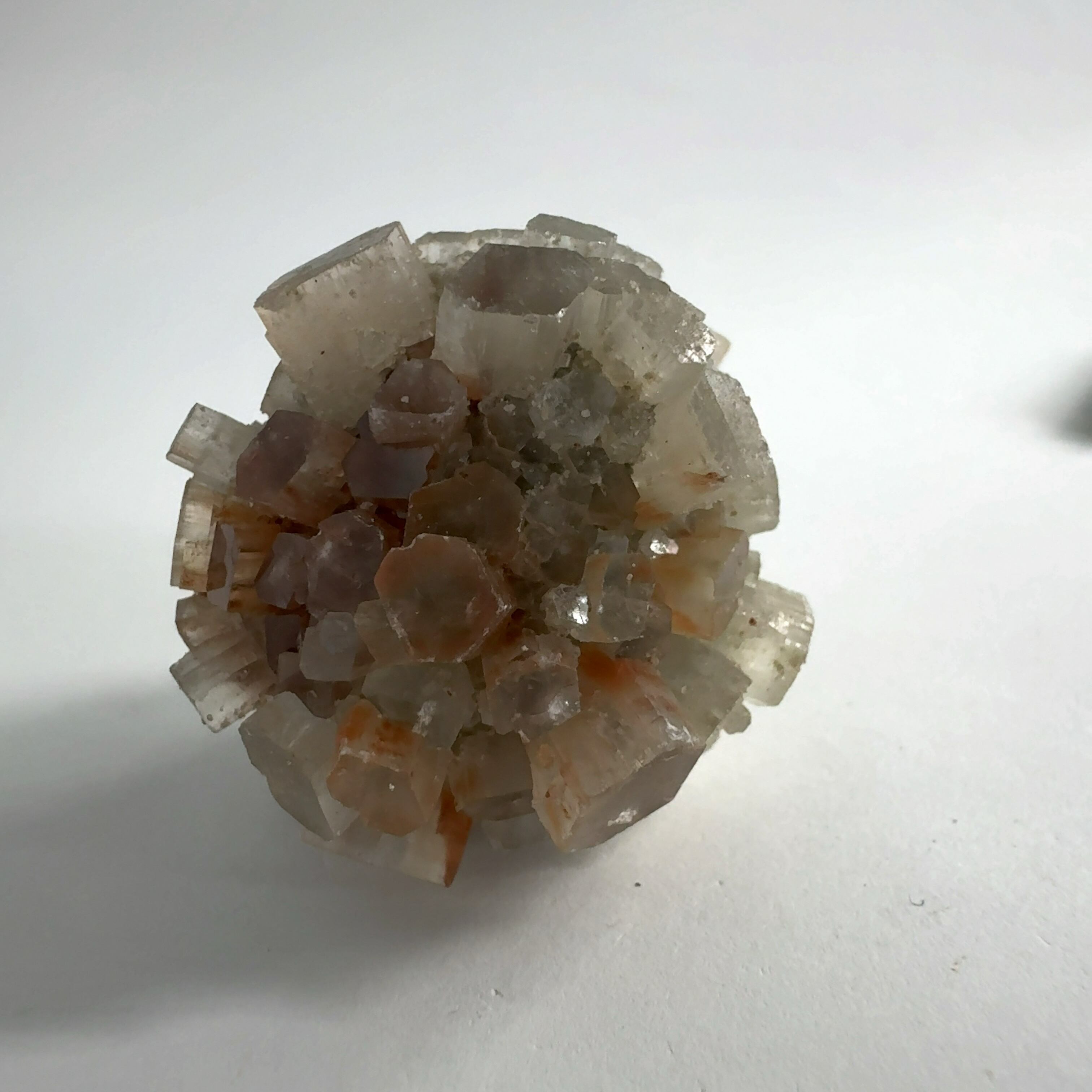 アラレ石は方解石と同じ成分で出来ているが、方解石は六方晶系なのに対し、アラレ石は斜方晶系。
