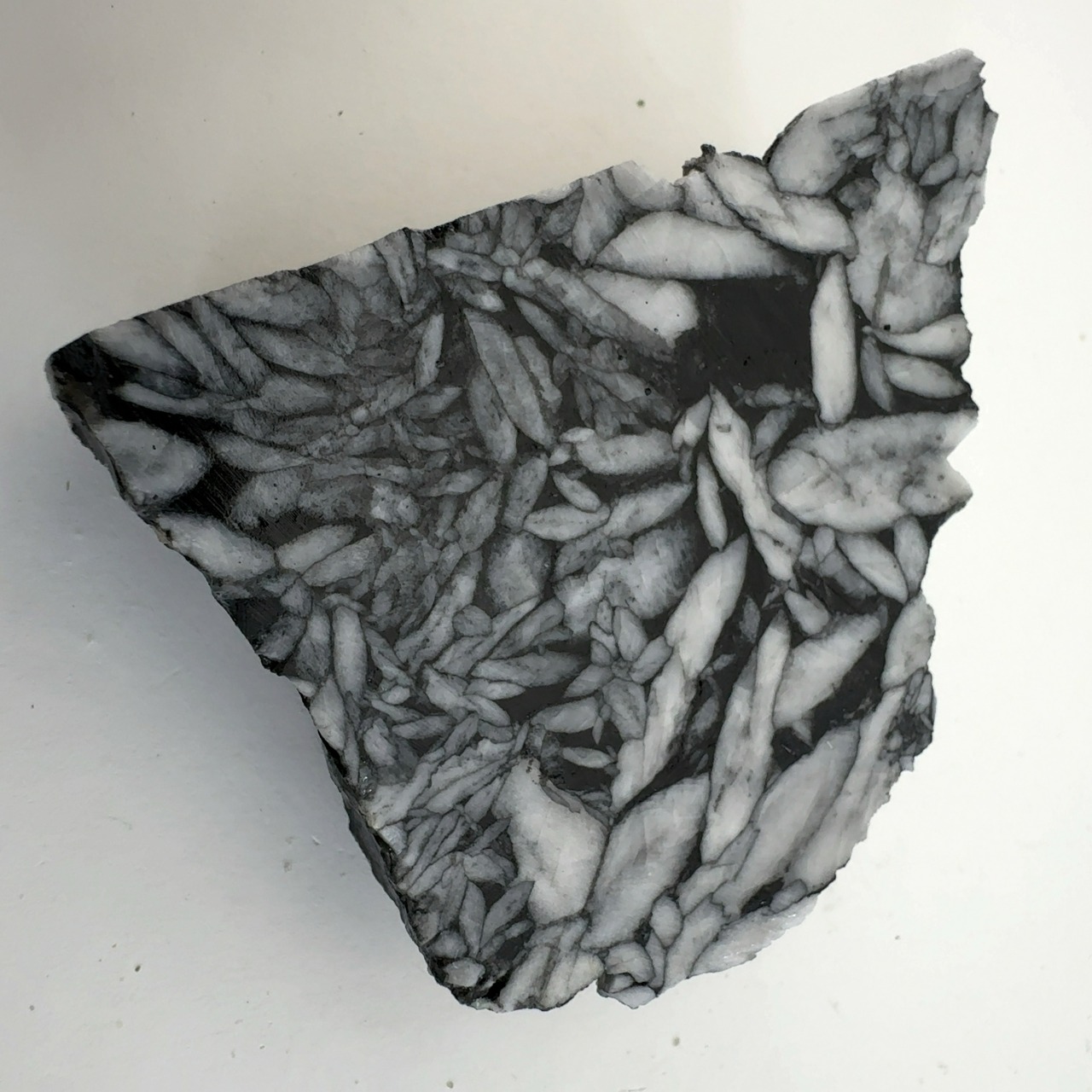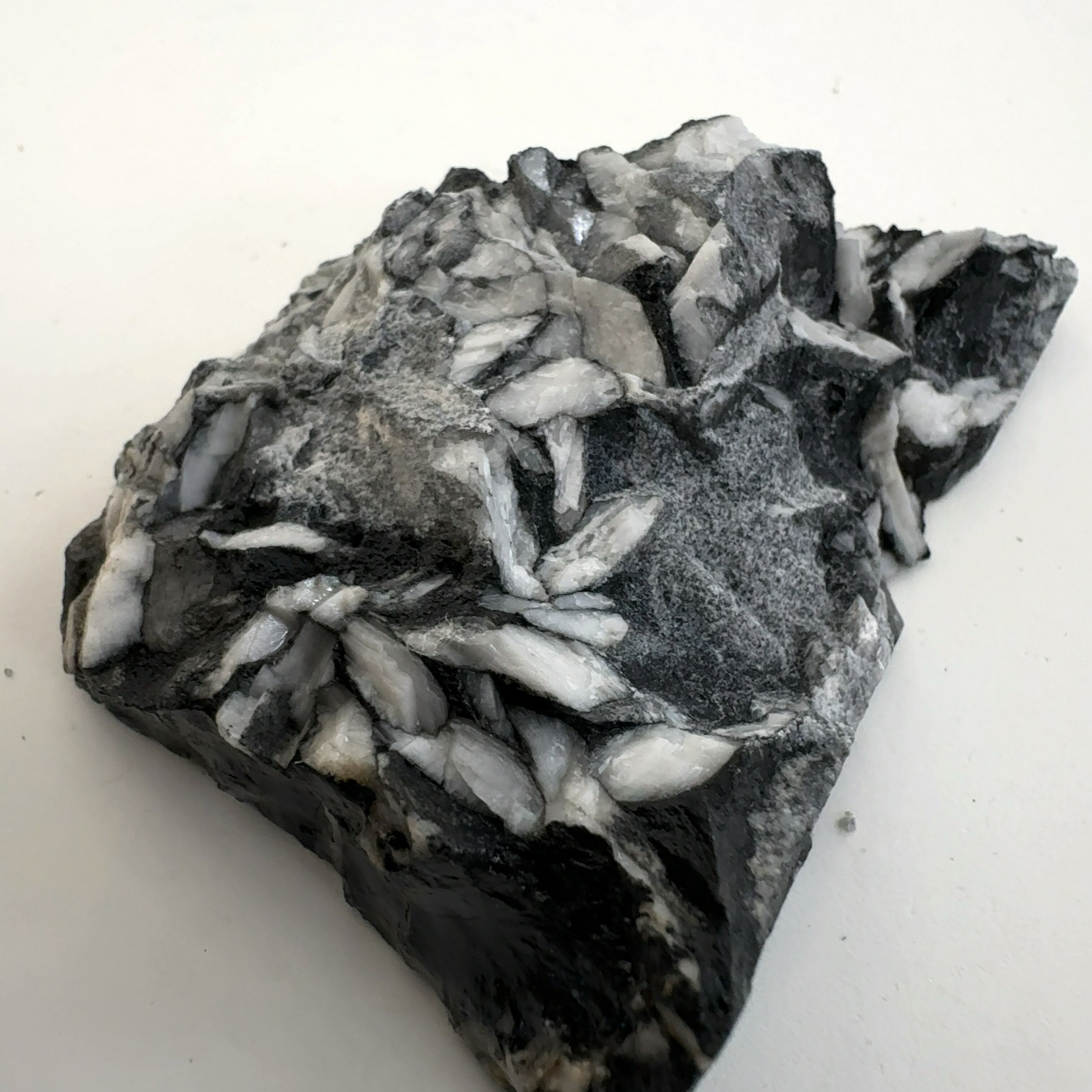 石墨に汚染された黒いドロマイトに含まれている、白色のマグネサイトの模様