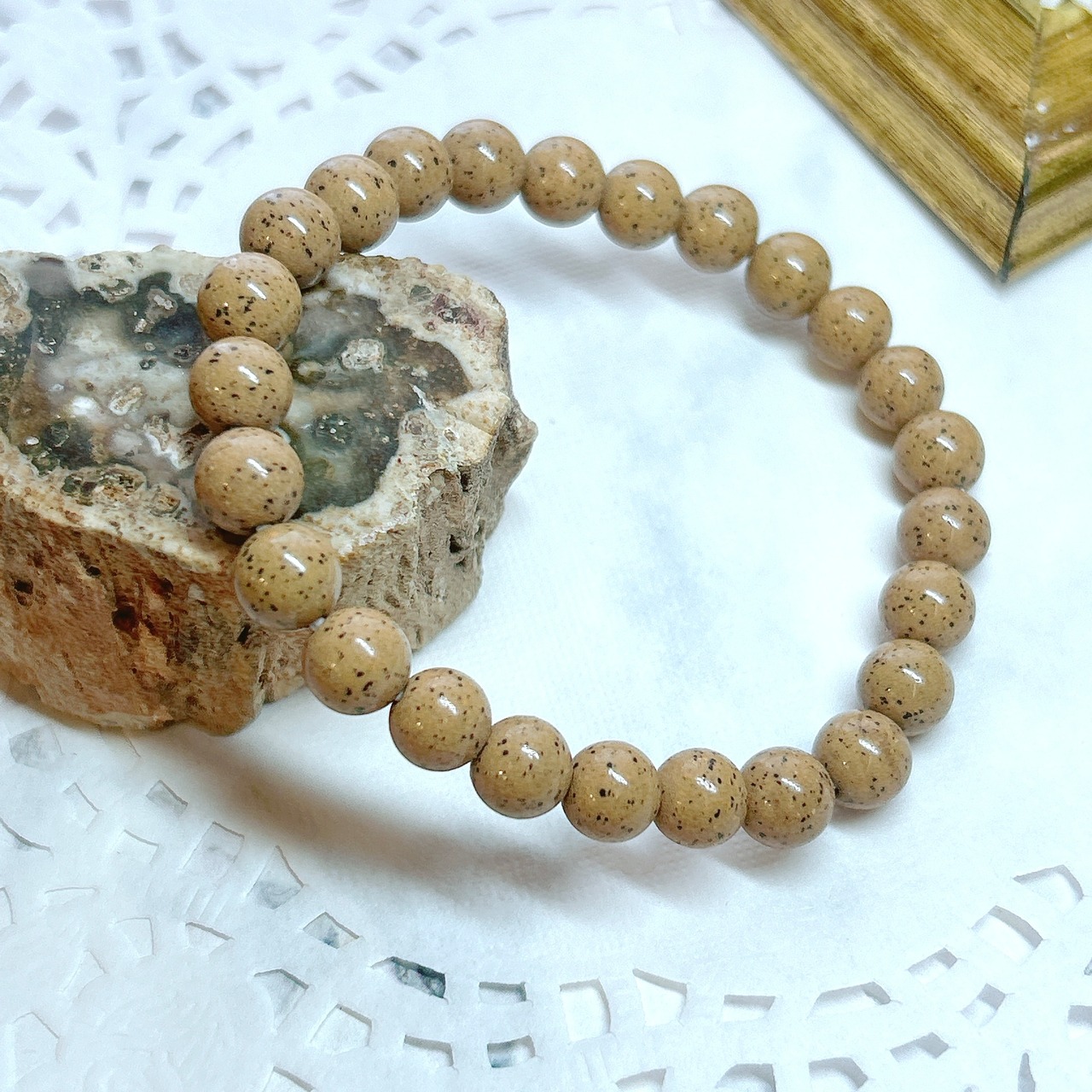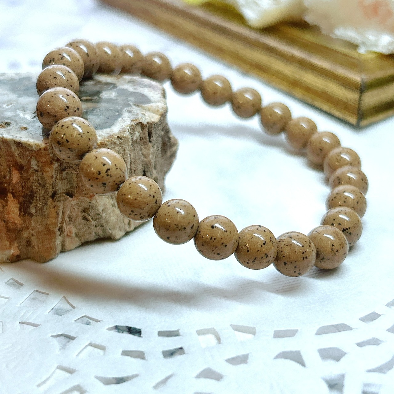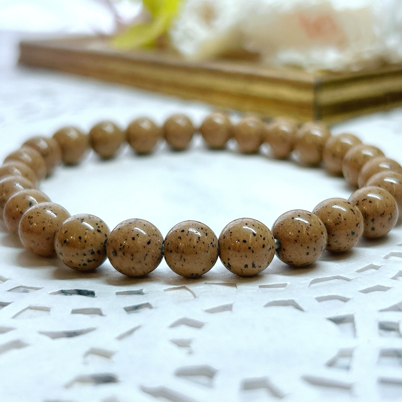 【E11149】北投石*8㎜*茶*ブレス*ホクトライト*ラジウム*セラミック