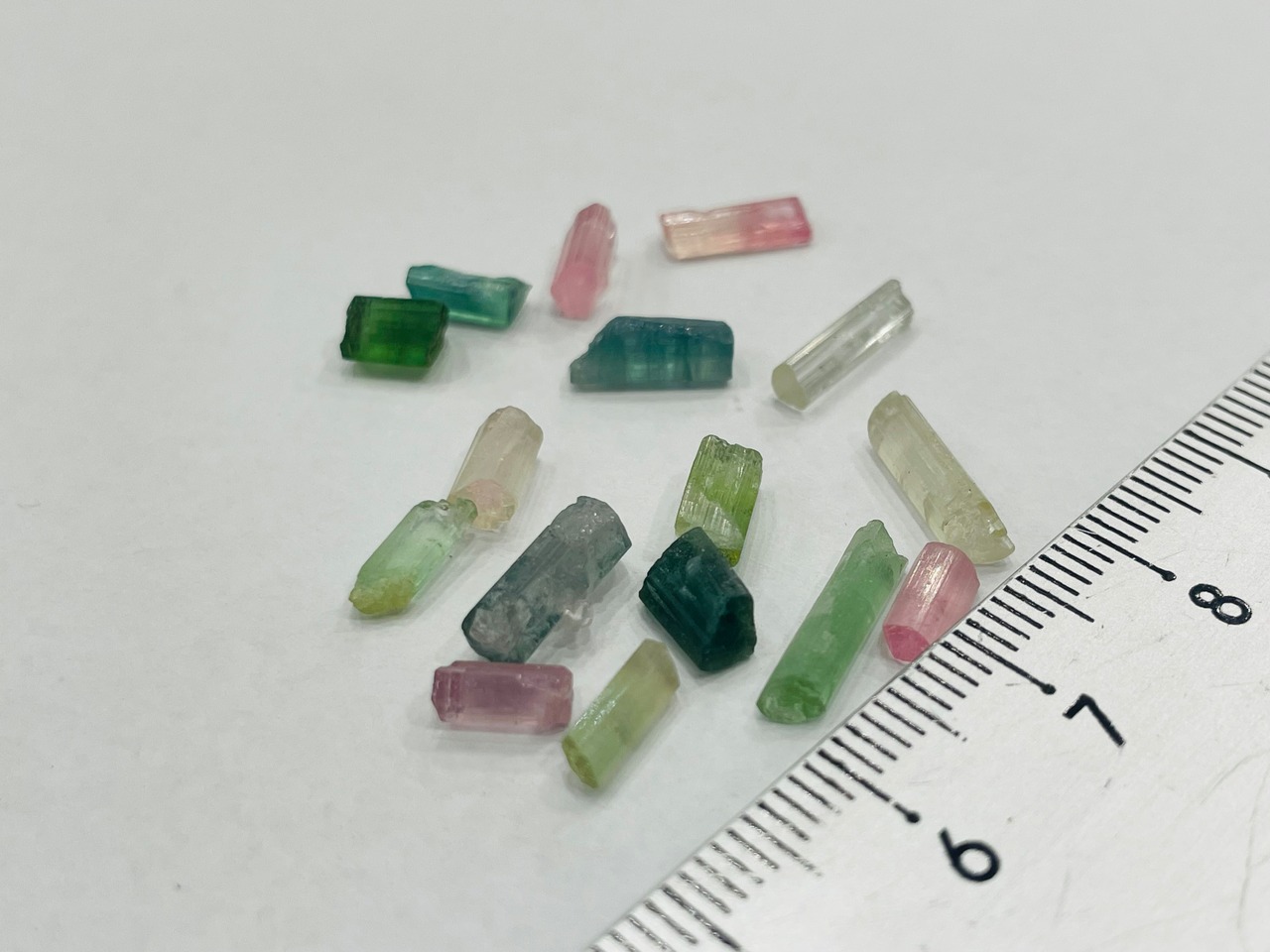 ちいさな宝石質のトルマリンの分離結晶の鉱物標本まとめ売りです。小瓶に入れてお届けします。