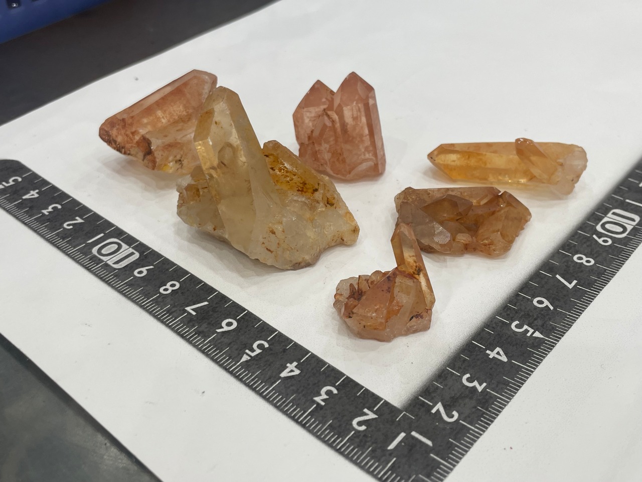 表面に酸化鉄が付着することでオレンジに色付いた天然水晶 セット売り