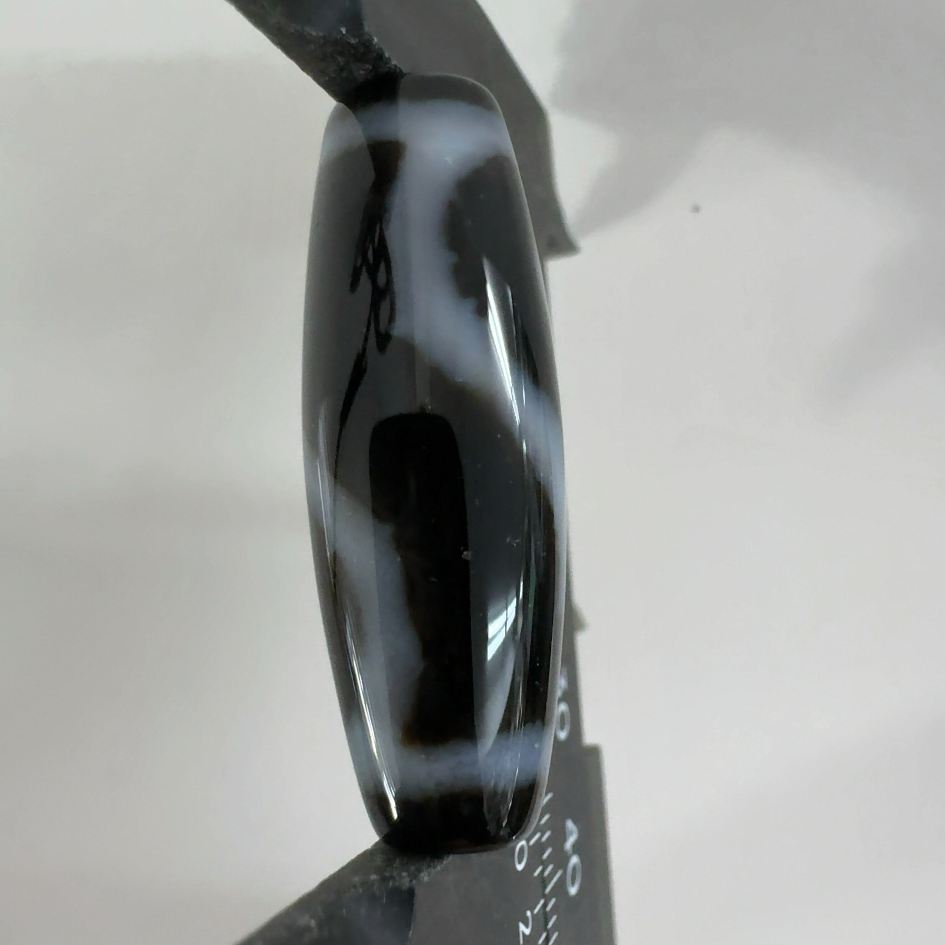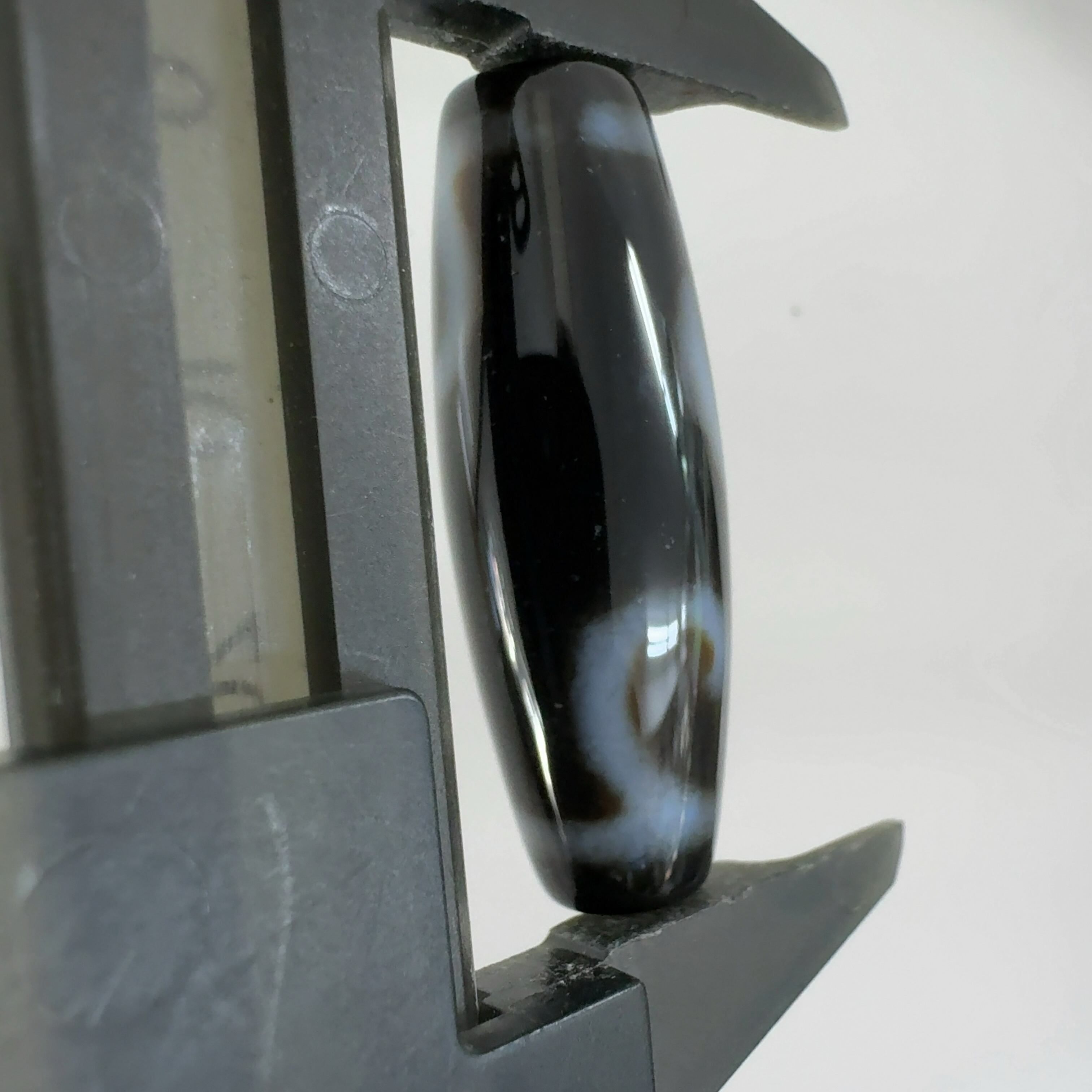 瑪瑙などを円筒に加工し、染料を浸透させて目の模様に焼き付けたもの。