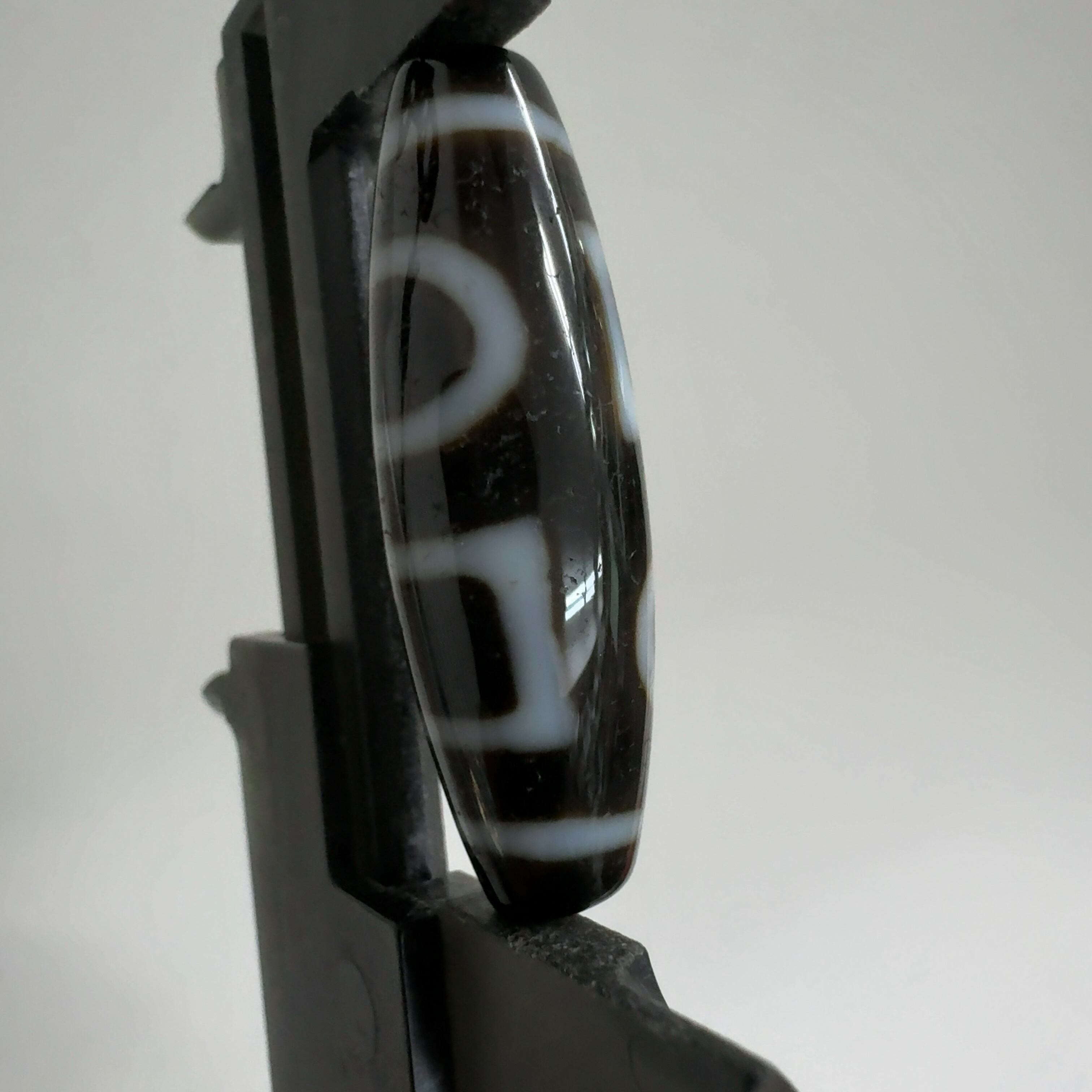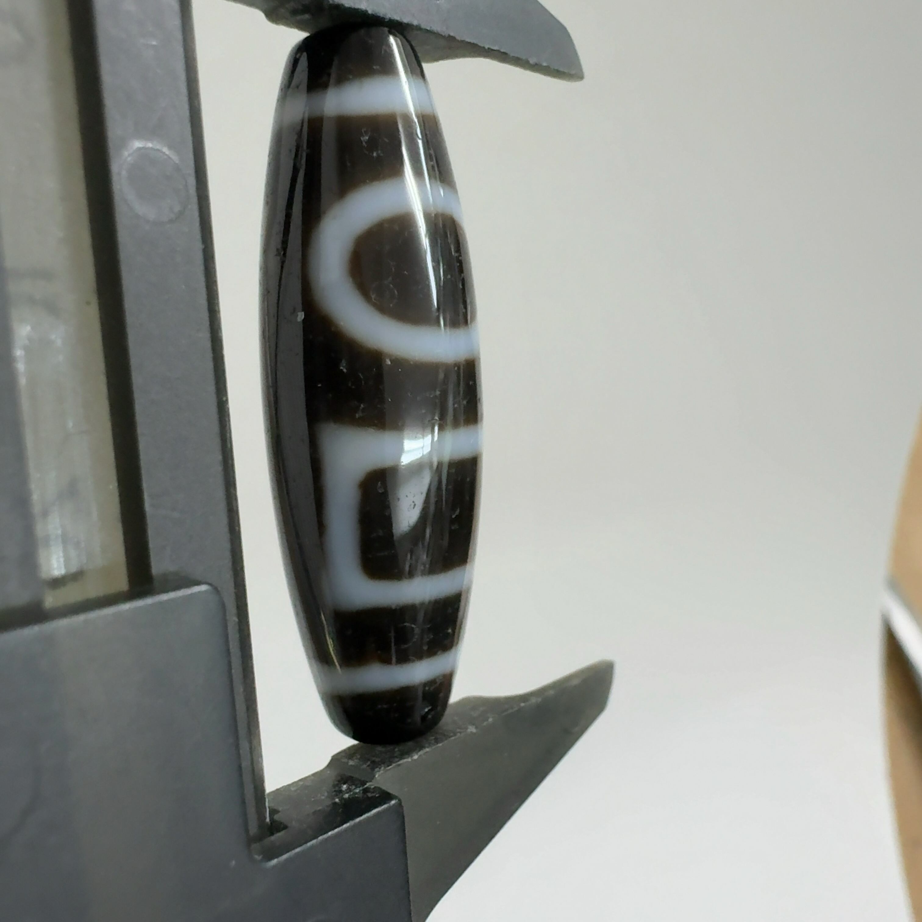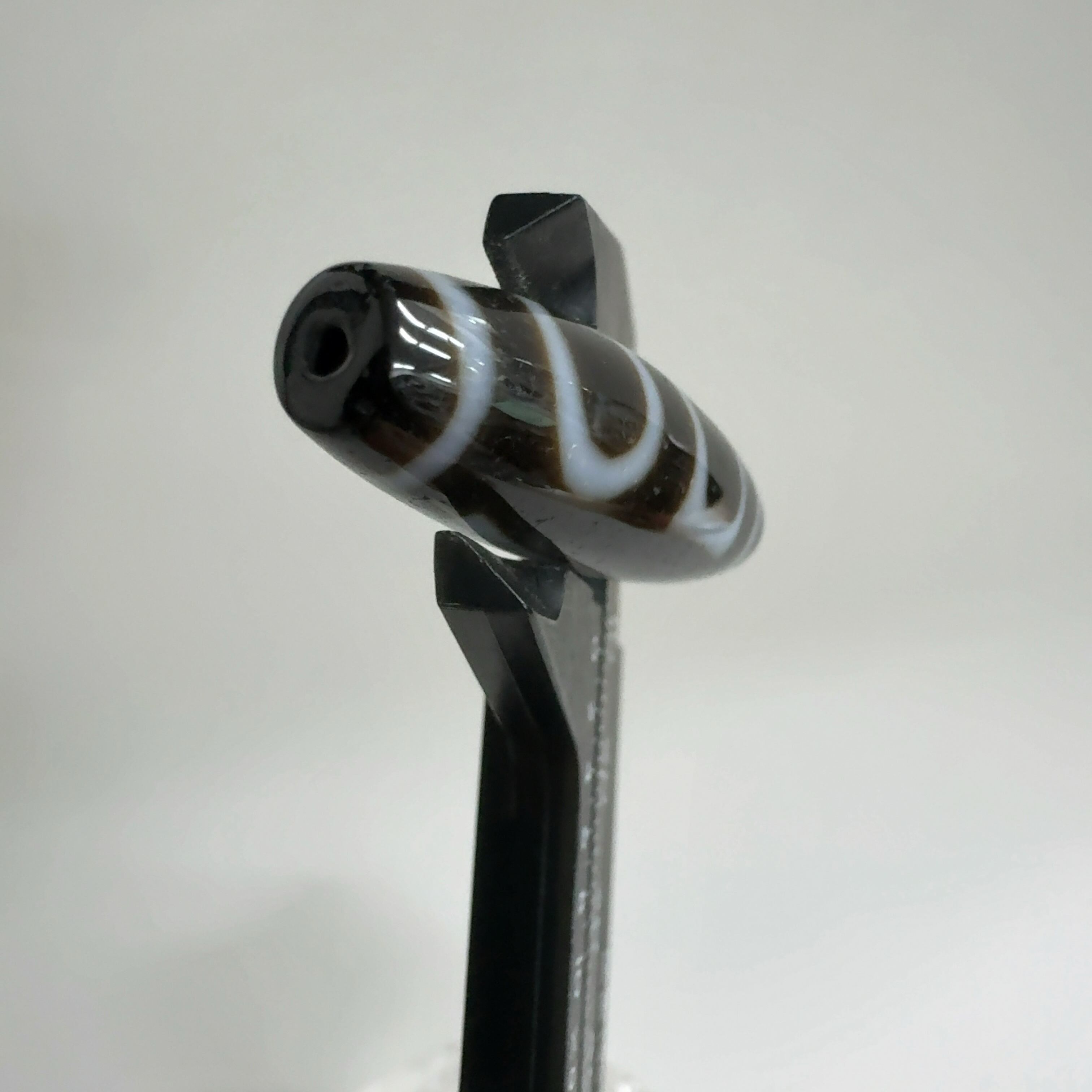 瑪瑙などを円筒に加工し、染料を浸透させて目の模様に焼き付けたもの。