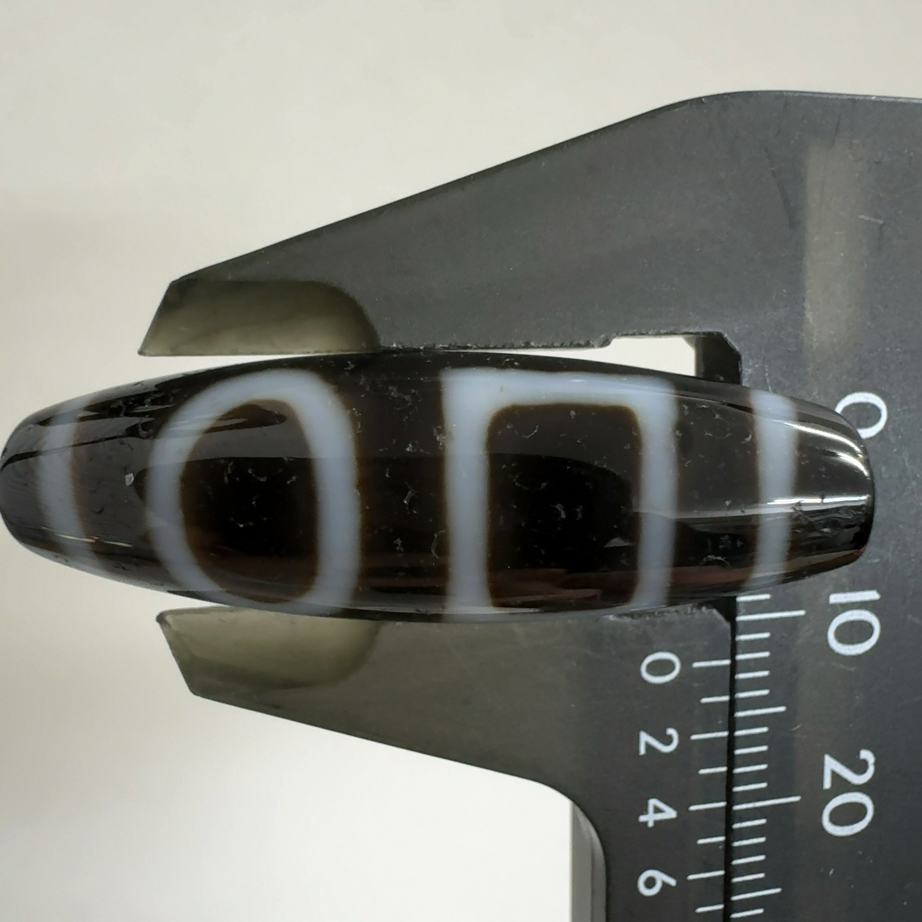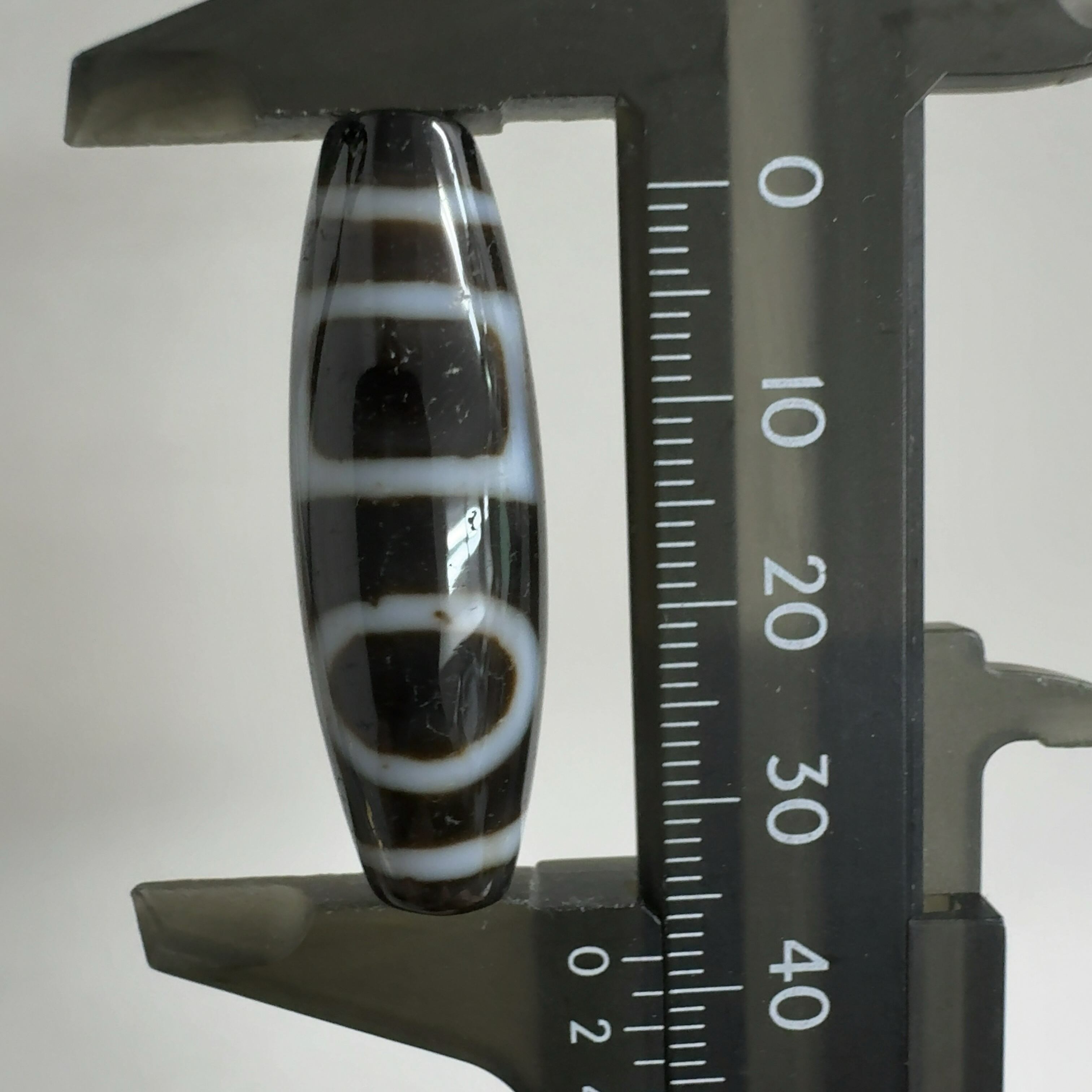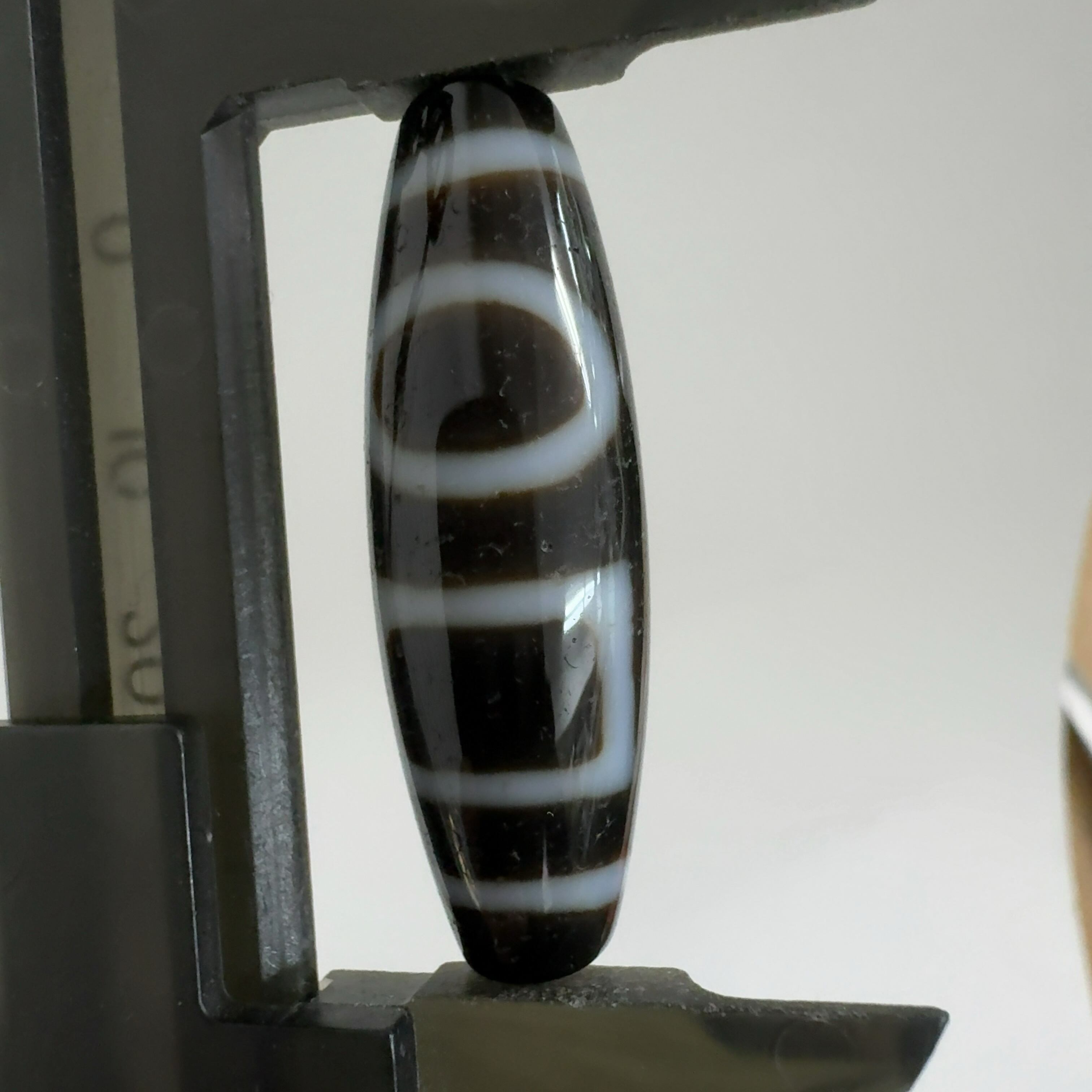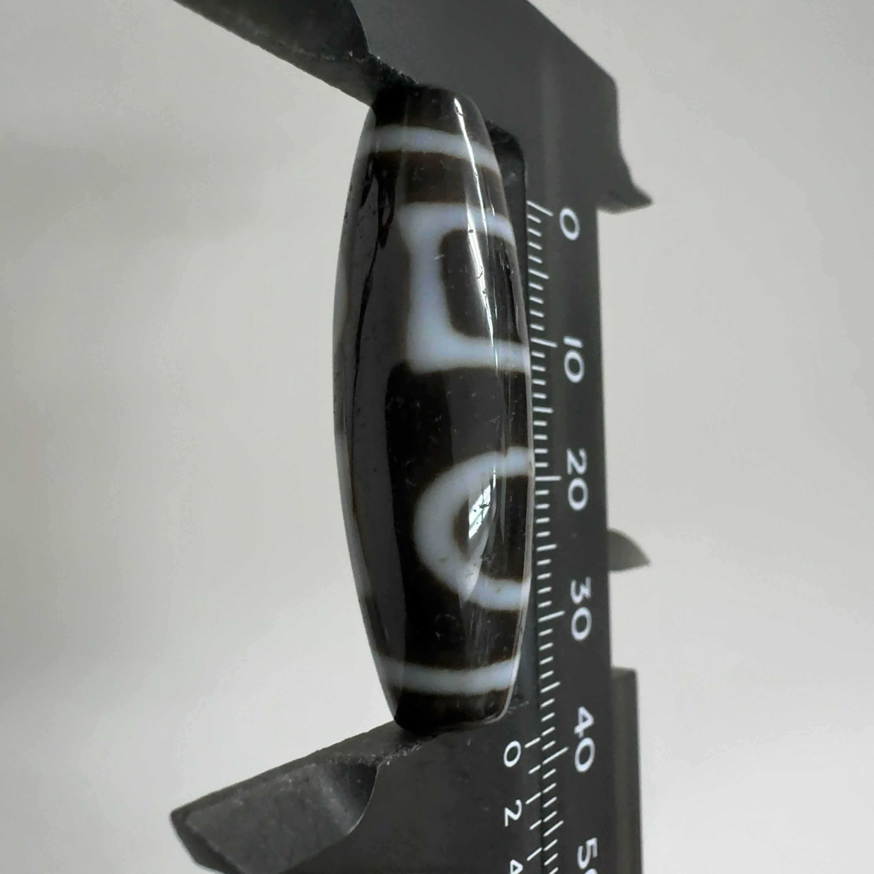 瑪瑙などを円筒に加工し、染料を浸透させて目の模様に焼き付けたもの。