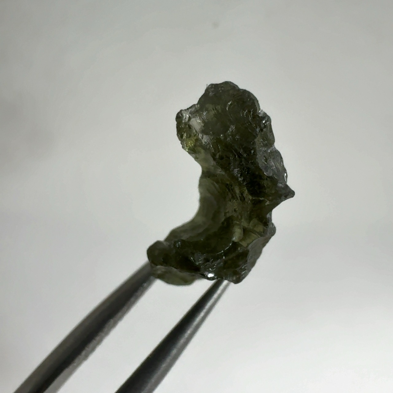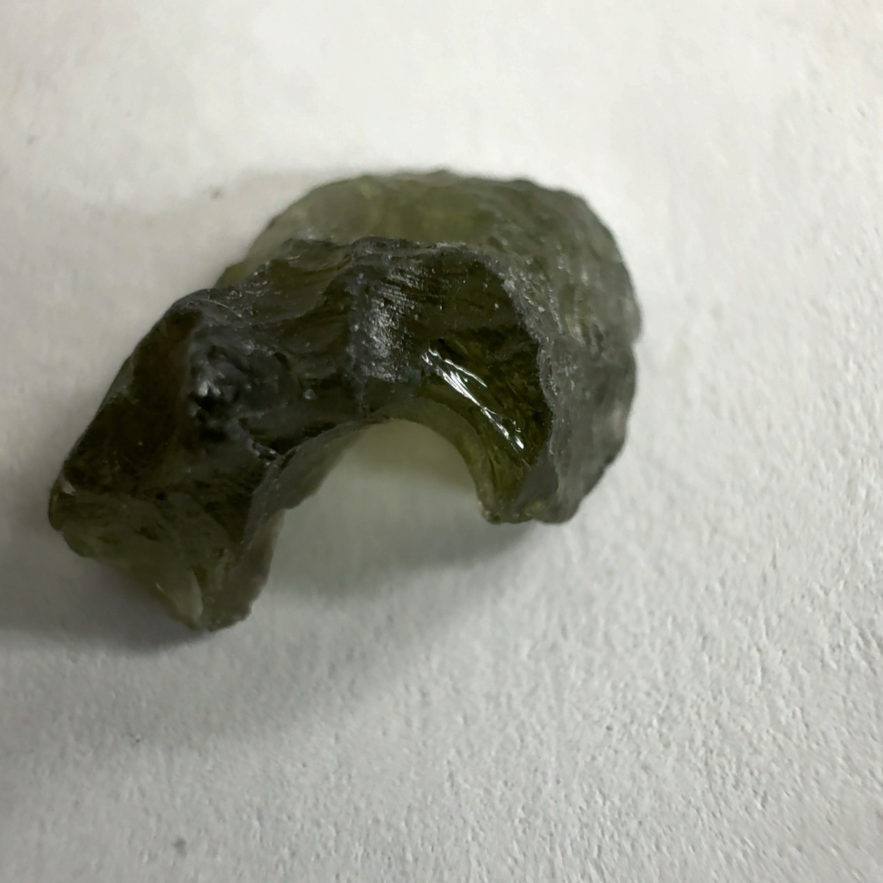 モルダバイトはチェコのモラビア地方〜ボヘミア地方で産出する天然ガラス(テクタイトの一種)で、1480万年前に衝突した隕石(ドイツにReis Impact Cratorを形成)の熱で地上の珪酸が溶けて隕石の成分と混ざり合って落ちてきたもの。