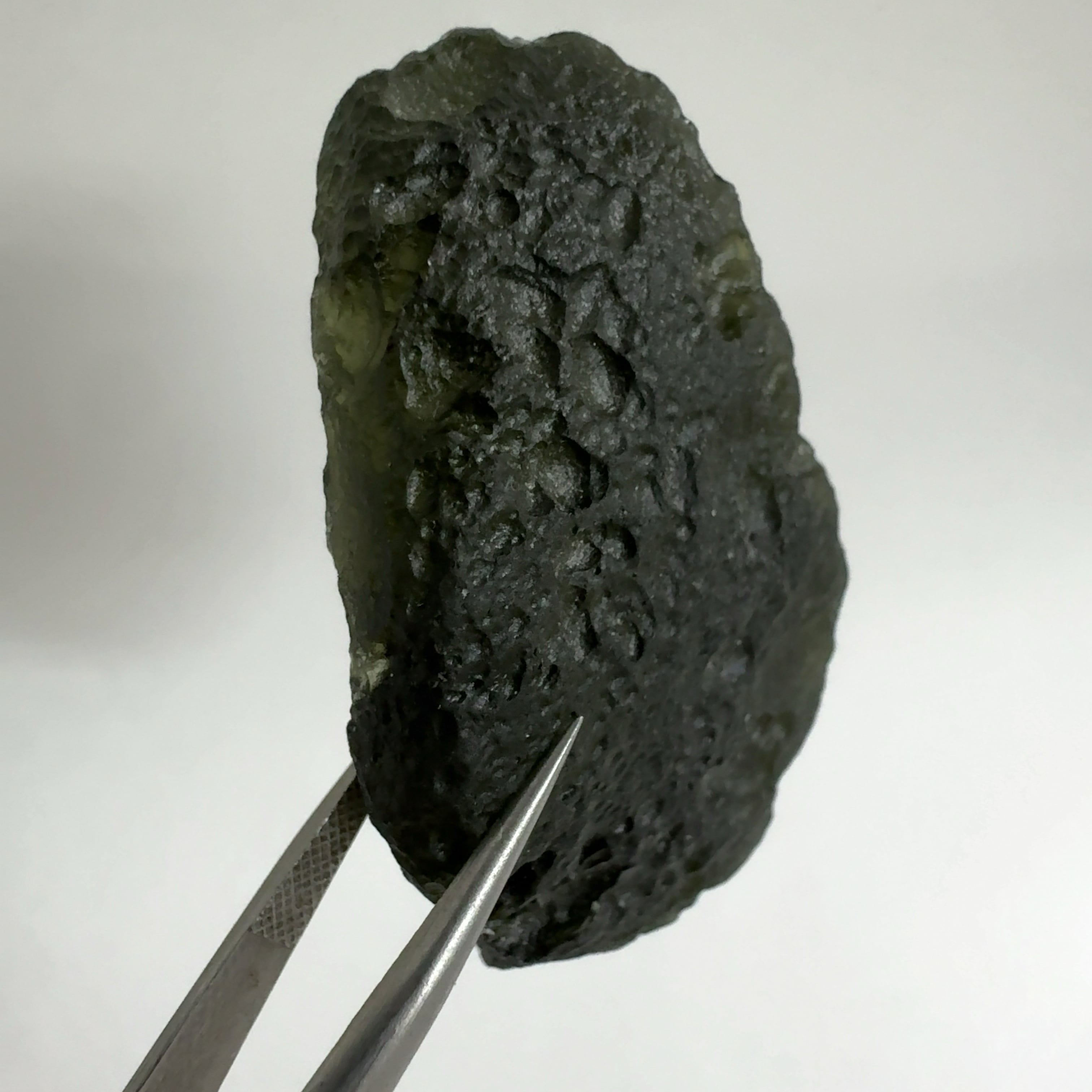 モルダバイトはチェコのモラビア地方〜ボヘミア地方で産出する天然ガラス(テクタイトの一種)で、1480万年前に衝突した隕石(ドイツにReis Impact Cratorを形成)の熱で地上の珪酸が溶けて隕石の成分と混ざり合って落ちてきたもの。
